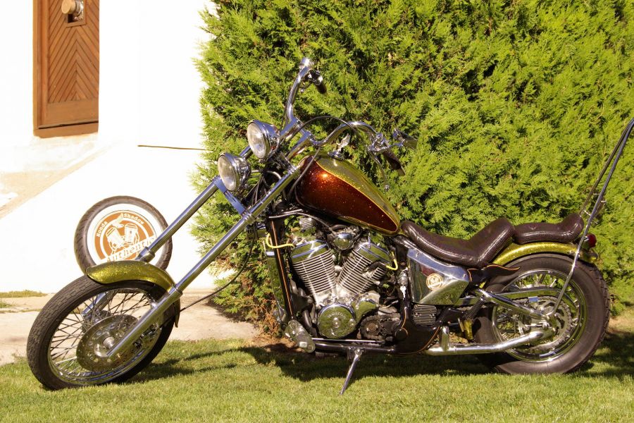 Hogy miért Double? Először is a nagyobb teljesítményt adó dupla karburátor miatt, és az adott kor stílusában szerelt dupla első lámpák hatására jött az ötlet. Ez a 95-ös kiadású krómozott blokkos négysebességes 600-as az adott típuson belül is kifejezetten alkalmas volt az igazi chopperré alakításra. Tudtam hogy egy részleteiben kidolgozott old school chopper több ráfordítást igényel minden tekintetben mint pl.egy klassz bobber, de ez volt az álom, és ha nem is könnyen de összejött.